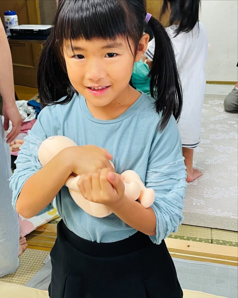 それぞれの週数の胎児人形は好評でみんな順番に抱っこしてくれていました。